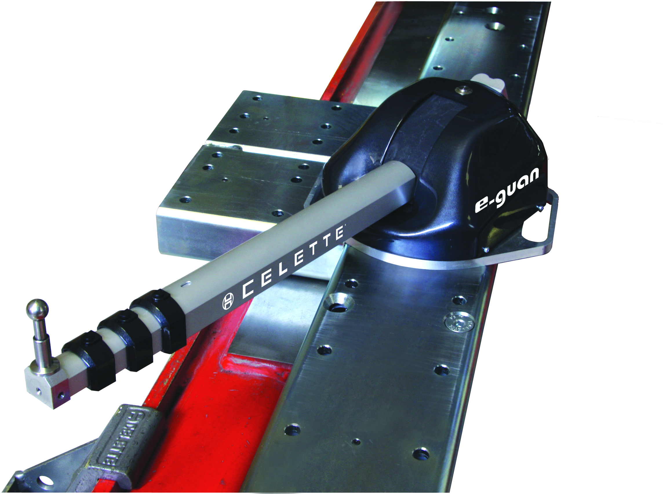 3D измервателна система проектирана и разработена специално от "CELETTE"като допълнение към стенда "SEVENNE" и системата "MZ", която притежават 90% от фирмените сервизи в България разработена за тежко катастрофирали автомобили и леки градски удари. Позиционира се с магнити върху модулните траверси изклю чително бързо и лесно и осигурява точни резултати при измерването. Специално разработената програма дава точни напътствия по време на целия процес чрез визуална и аудио индикация на точките. Системата позволява няколко начина за работа: бърз тест по симетрия, в комбинация с четири челюсти за праговете и със системата MZ и MZ+. E-guan дава три резултата: протокол за състоянието на автомобила преди ремонт, измерване на желана точка в реално време по време на ремонта и протокол за извършен ремонт на автомобила със силата на сертификат признат от всички производители на автомобили в света.